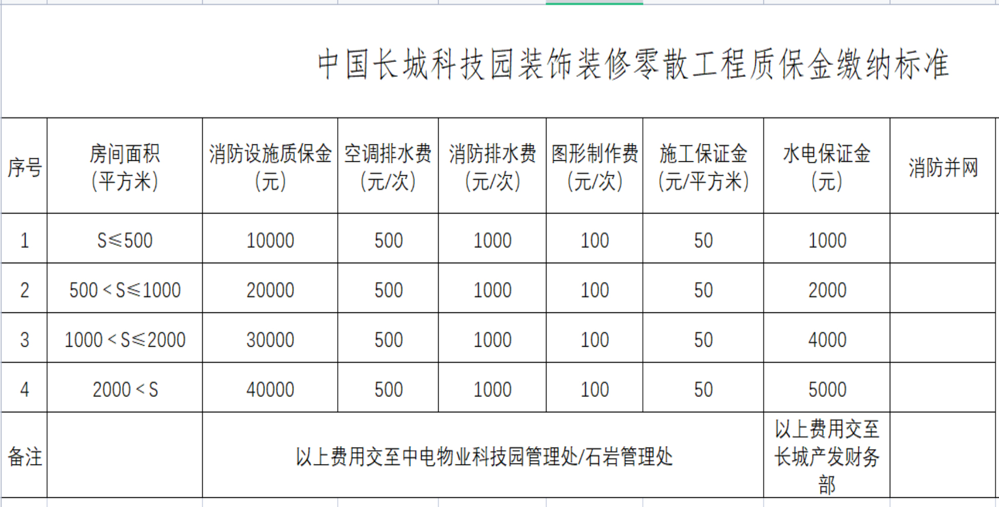 (4)由成交單位負責交付各種物業押金費用(不含消防押金),參考中電物業質保金標準: